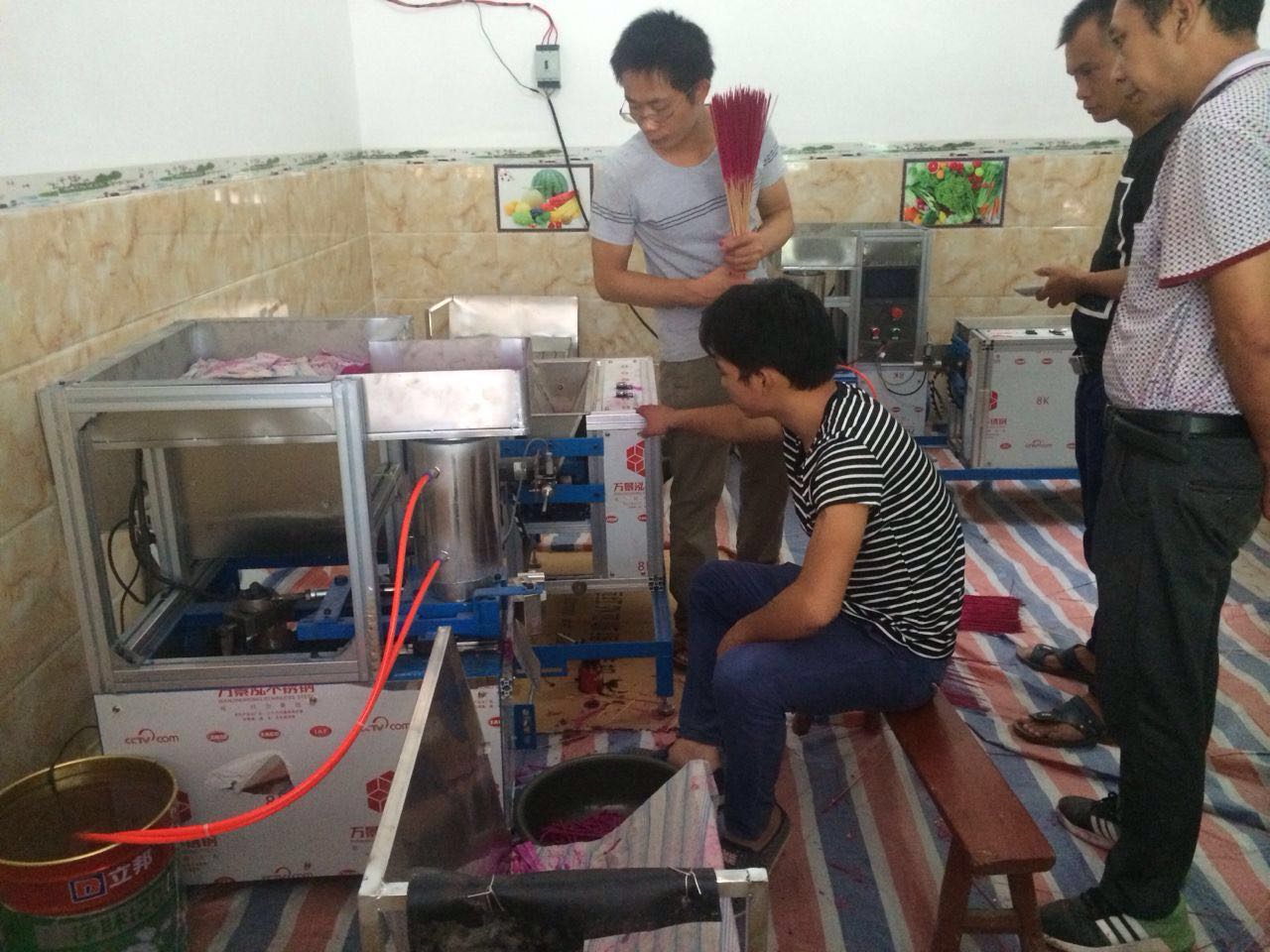 實(shí)用新型制香機(jī),機(jī)重約200公斤(代辦托運(yùn))投入流動(dòng)資金1000元,購(gòu)齊原料,接上二相電源(220V照明電)即可生產(chǎn),一周內(nèi)包出產(chǎn)品。因?yàn)槠渲写蟛糠衷暇偷厝〔模覂r(jià)格甚微,可有效地進(jìn)行市場(chǎng)產(chǎn)品調(diào)節(jié),而經(jīng)久不衰,市場(chǎng)證明創(chuàng)辦機(jī)械制香廠確為投資少,零風(fēng)險(xiǎn)、見效快的冷門致富項(xiàng)目。